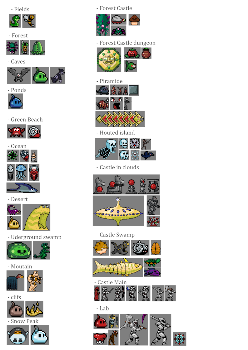 set of prototype characters mobs and enemys and the envirement i plan to populate them with
